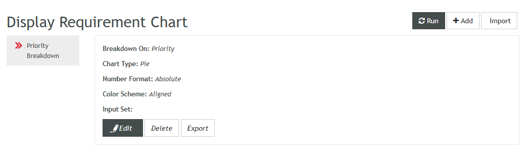 Click Import to select an exported Chart xml definition file and import it. If necessary, adapt the Chart input set after the import is completed.