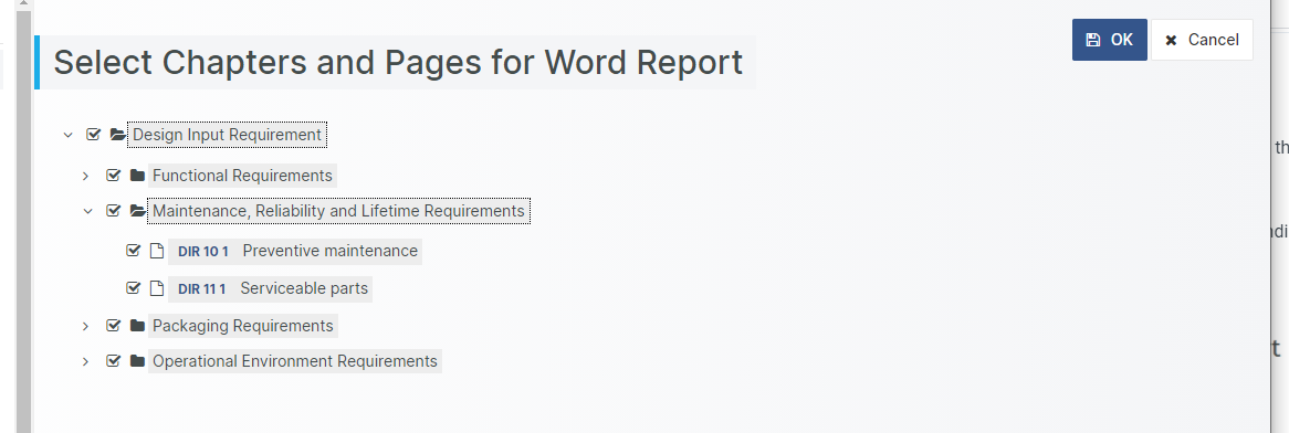 Select the Generate Word Report menu item in the corresponding View. Then select the Document Objects to include in the report.