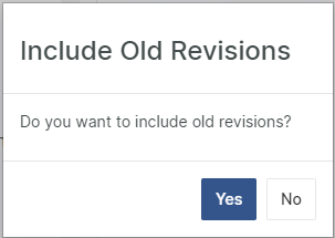 After the selection is completed, select whether old revisions (not only the most current revision) shall be included in the report. In most cases, you will answer No in order to get only the latest revision of the selected document objects.