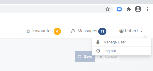 The user may manage his/her account from the main navigation bar: