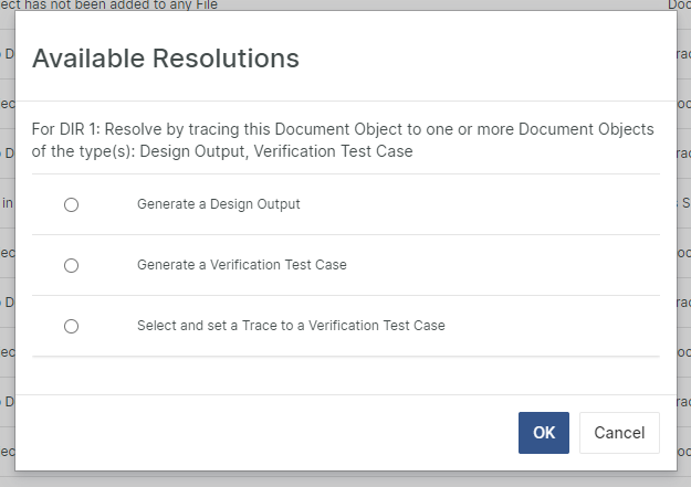 The resolution mechanism provides available options based on the current user's permissions, the item's state and the project context. Select the option that is the most appropriate to resolve the inconsistency.
