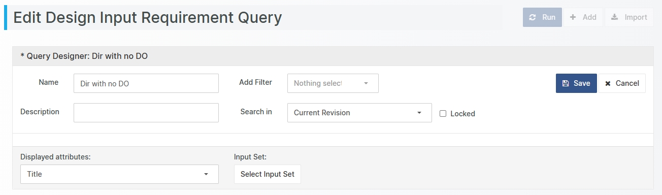 Users with Project Management user rights have the possibility to Lock (and unlock) a query by checking the Locked checkbox. A locked query design cannot be edited or disabled by other users.