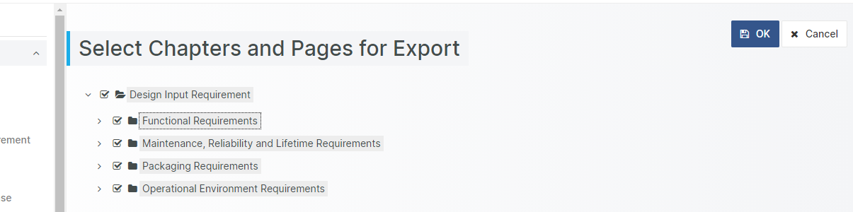 When exporting Failure mode-like or Risk Analysis-like objects, the user is inquired if the traced Hazard and Mitigation objects should automatically be included in the exported set. Since Failure mode-like objects are closely tied to the traced Hazard objects, it is recommended to include these during export.