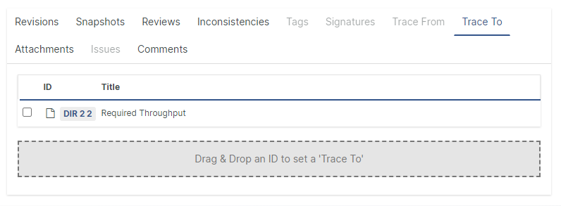 You can add traces by dragging and dropping Aligned Elements ID:s in to the designated drop areas in the Trace To and Trace From tab pages.