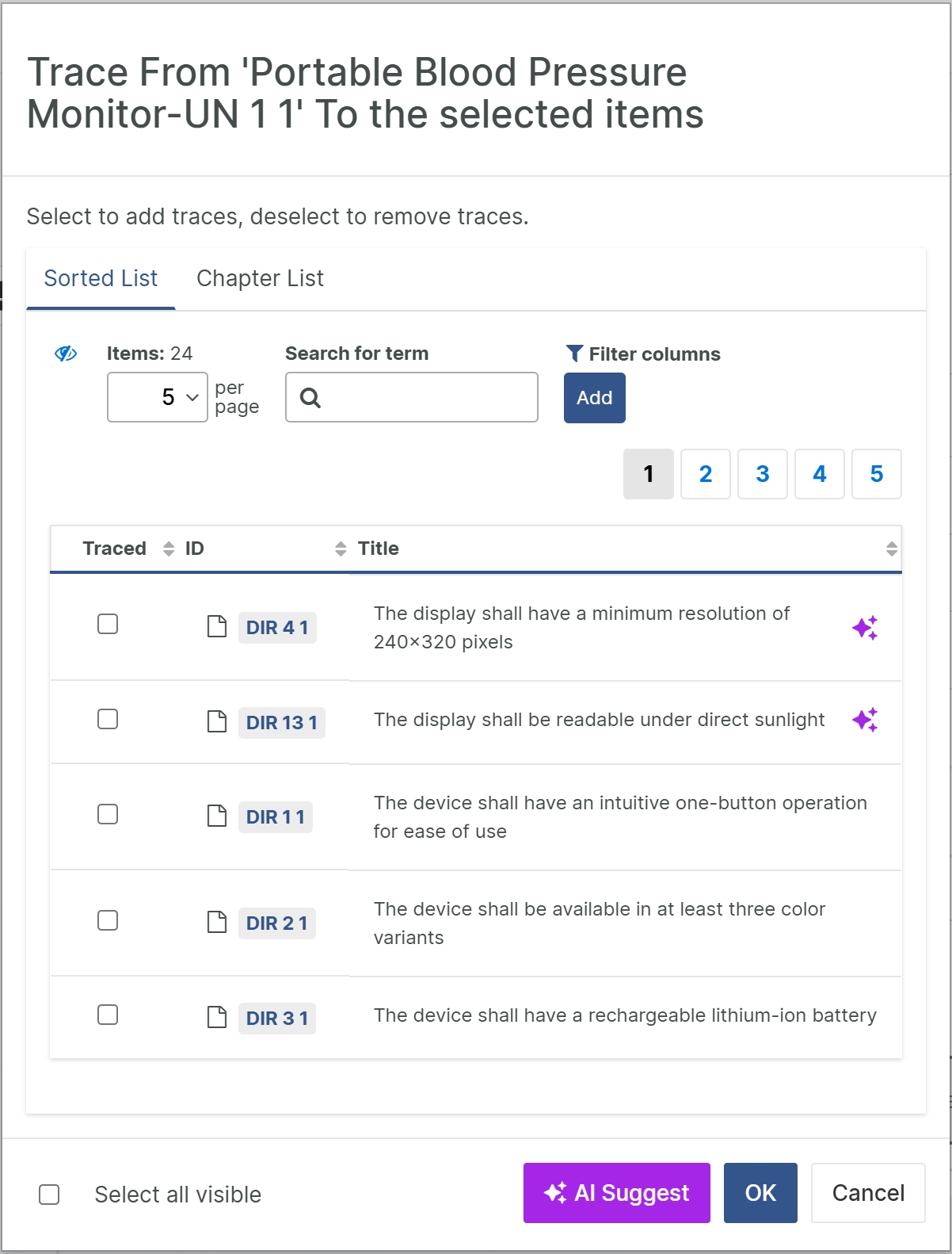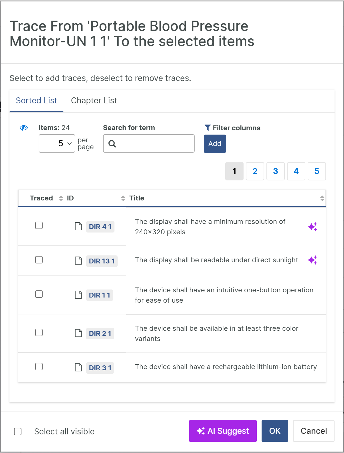 This feature recommends trace candidates when setting traces to or from an document object. This is done by evaluating the object’s title, type, and desired trace direction.