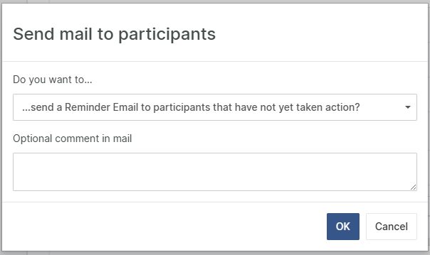 Note! Make sure the participating users have been assigned email addresses in the user management and that SMTP settings have been set up in the web.config file for the email functionality to work.