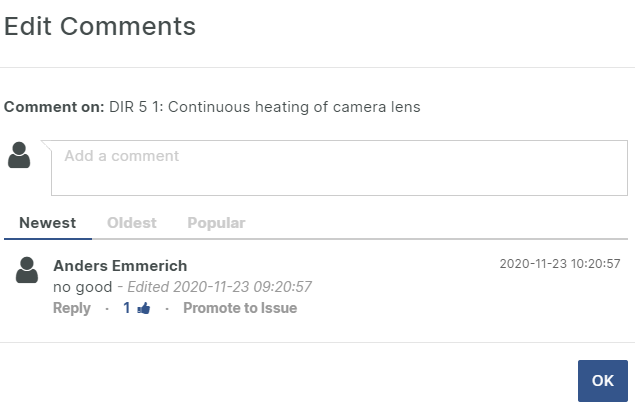 It is possible to promote Comments to Issues at this stage as well.