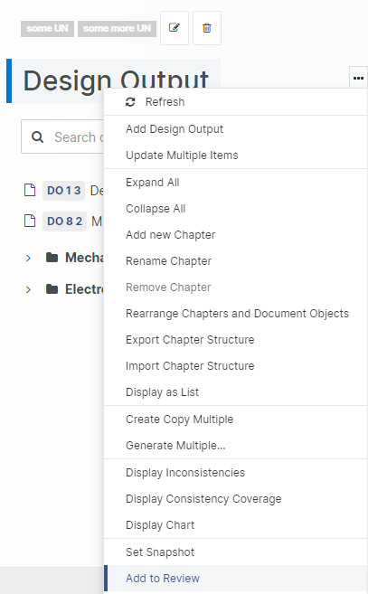 To simplify the setup of a Review, the Add to Review function is available in several views,