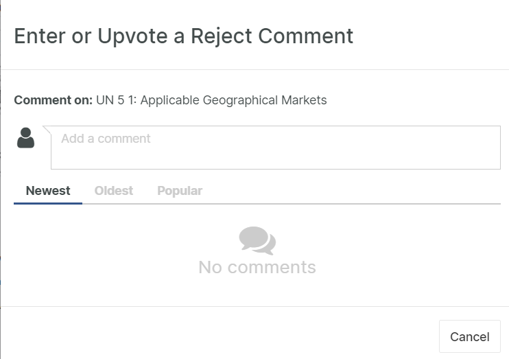You can enter a new Comment or Upvote an existing Comment that addresses your concern. The Comments are associated with and collected in the Document Objects Comment section. The Comments can also be inspected and edited by clicking on the Round Speech Bubble icon. Use @mentions to automatically send emails to mentioned users in the comments.