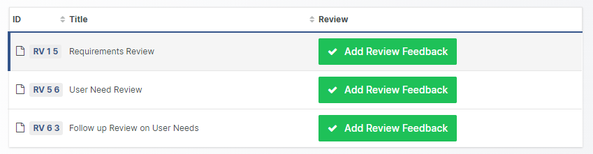 This view is also accessible from the Your Assigned Items => Assigned Reviews view, found in the sidebar, which displays a list of all Reviews in which you are expected to enter your Review Feedback.