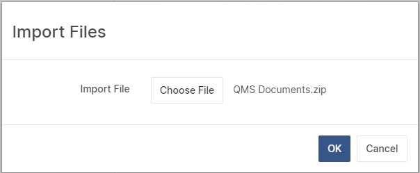 Select Import Files and in the displayed dialog, browse to the zip file and click OK.