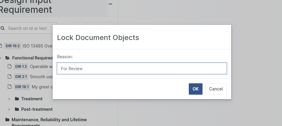 Enter the reason for the locking in the text box and click OK to complete the lock operation.