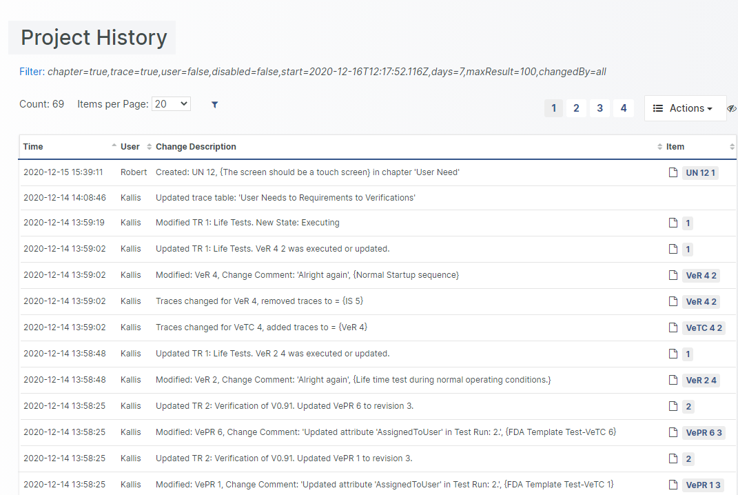Click on the Item/ID of a Project Change Event to navigate to the corresponding Document Object.