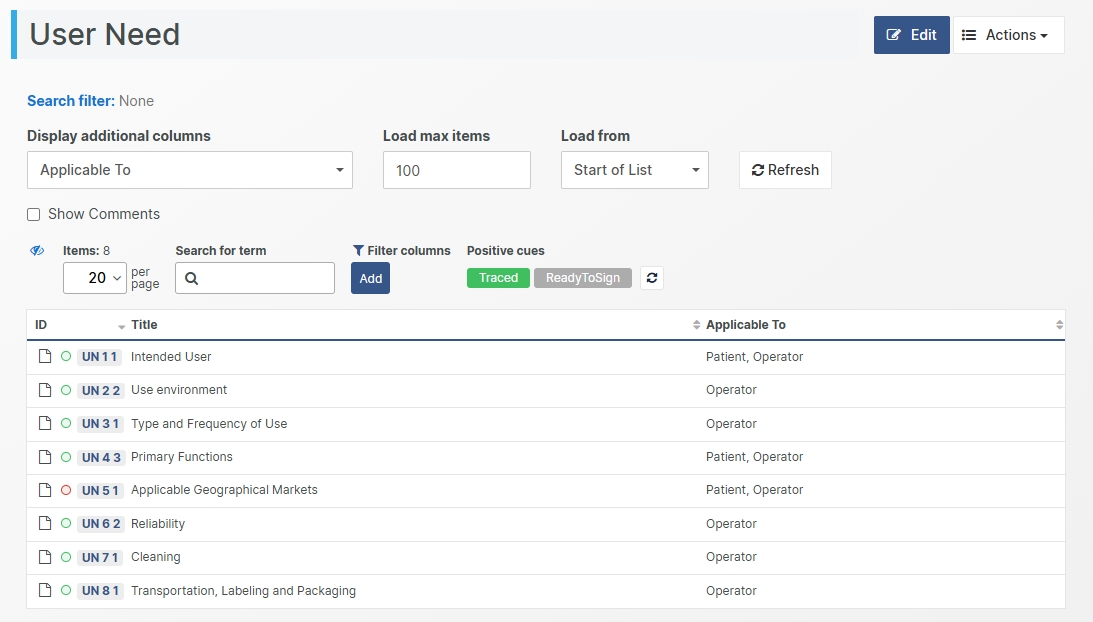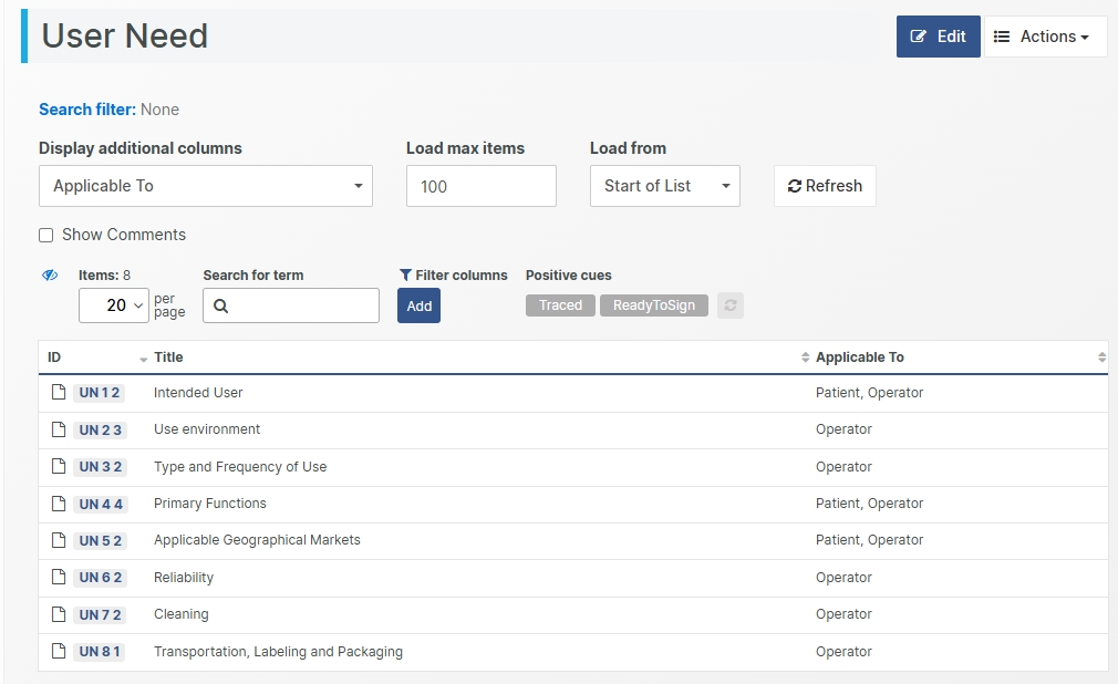 A Document Object in a Chapter can be displayed in a List View. This tabular form lists the Document Objects together with their attributes. The Filter, Search and Sort options help you work with the set.