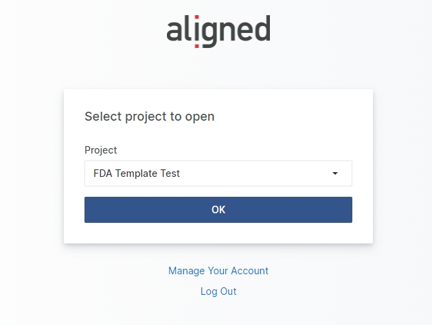 This will take you to the Open Project view. Select a Project in the dropdown and click OK to open it.