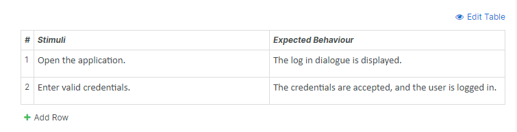 To further manipulate the rows in a table attribute, click on the Edit Table link in the upper right corner to access the table editing tools.