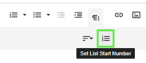 How to start a numbered list at a selected number