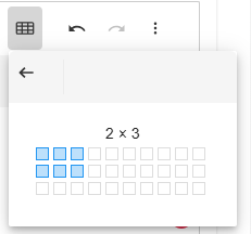 Use the tool bar Table dropdown to set the size of the table you intend to insert.