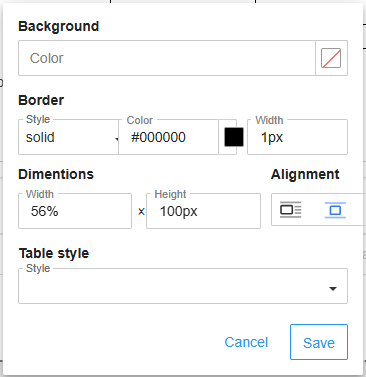 Click on Table properties