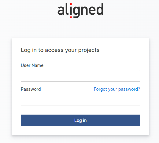 Use your user name and password for the previous step to log in to Aligned Elements.