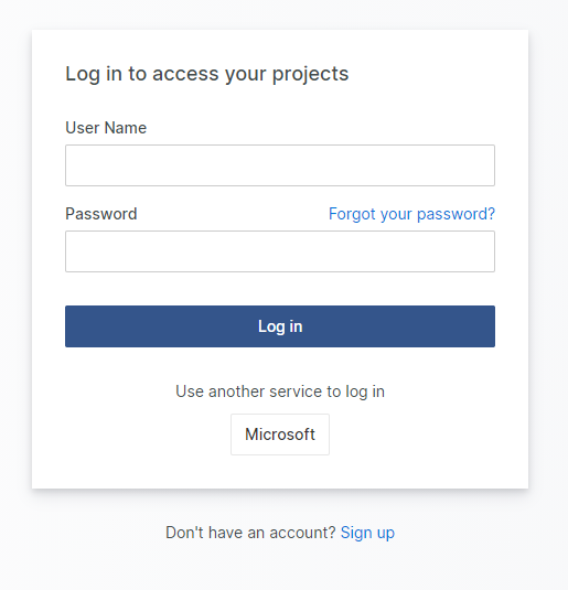 To get started, click on the Sign up link at the bottom of the log in screen.