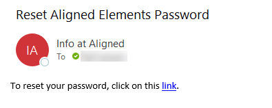 The system will send you an email with the subject line "Reset Aligned Elements Password" including a link.