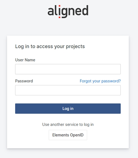 The Aligned Elements login screen will now, below the normal login controls, display a button to use for logging in with Entra. Click on the button to log in to Aligned Elements using Entra.