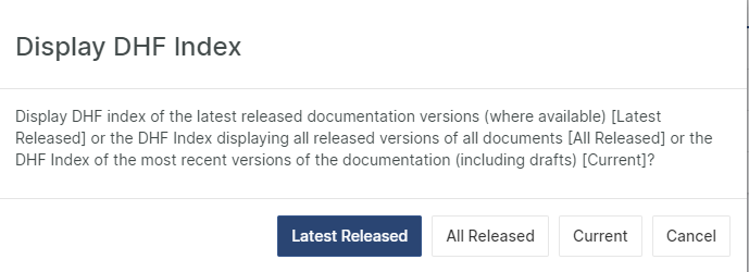 The second option displays the most recent release version of Documents which primarily makes sense when using e-signed documents in the DHF Index.