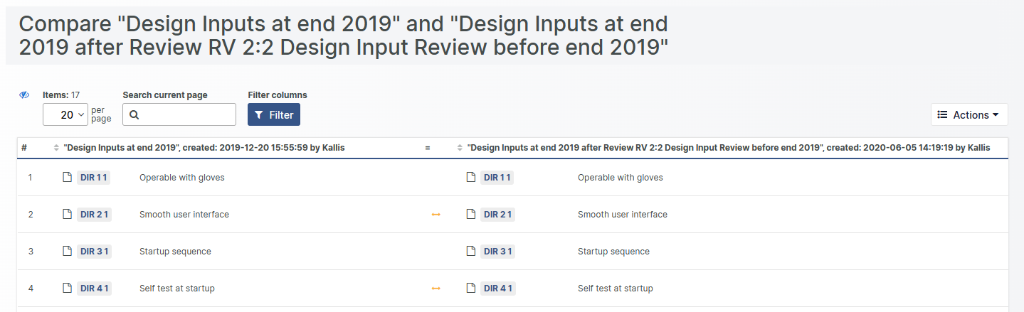 If you select to display document objects only, you may compare revisions of the document objects regardless of their location in the chapter structure.