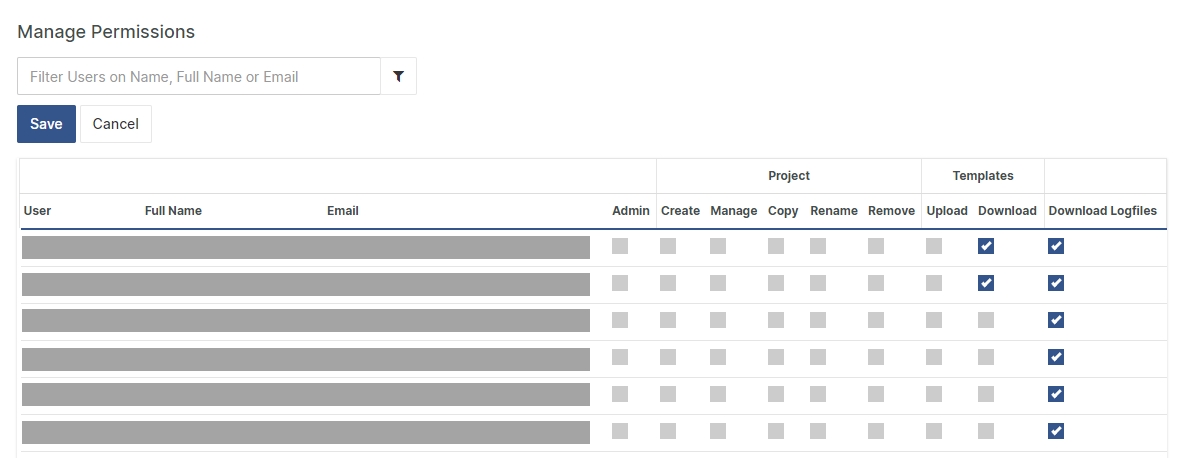 Tick the Admin checkbox and click Save to assign Web Admin rights to a web user.