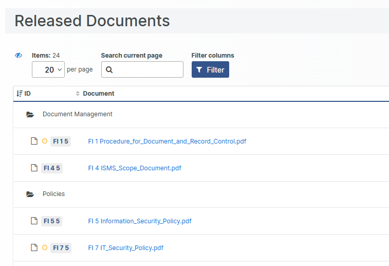 The Release Document View lists all currently released documents, with a quick download access to the document itself.